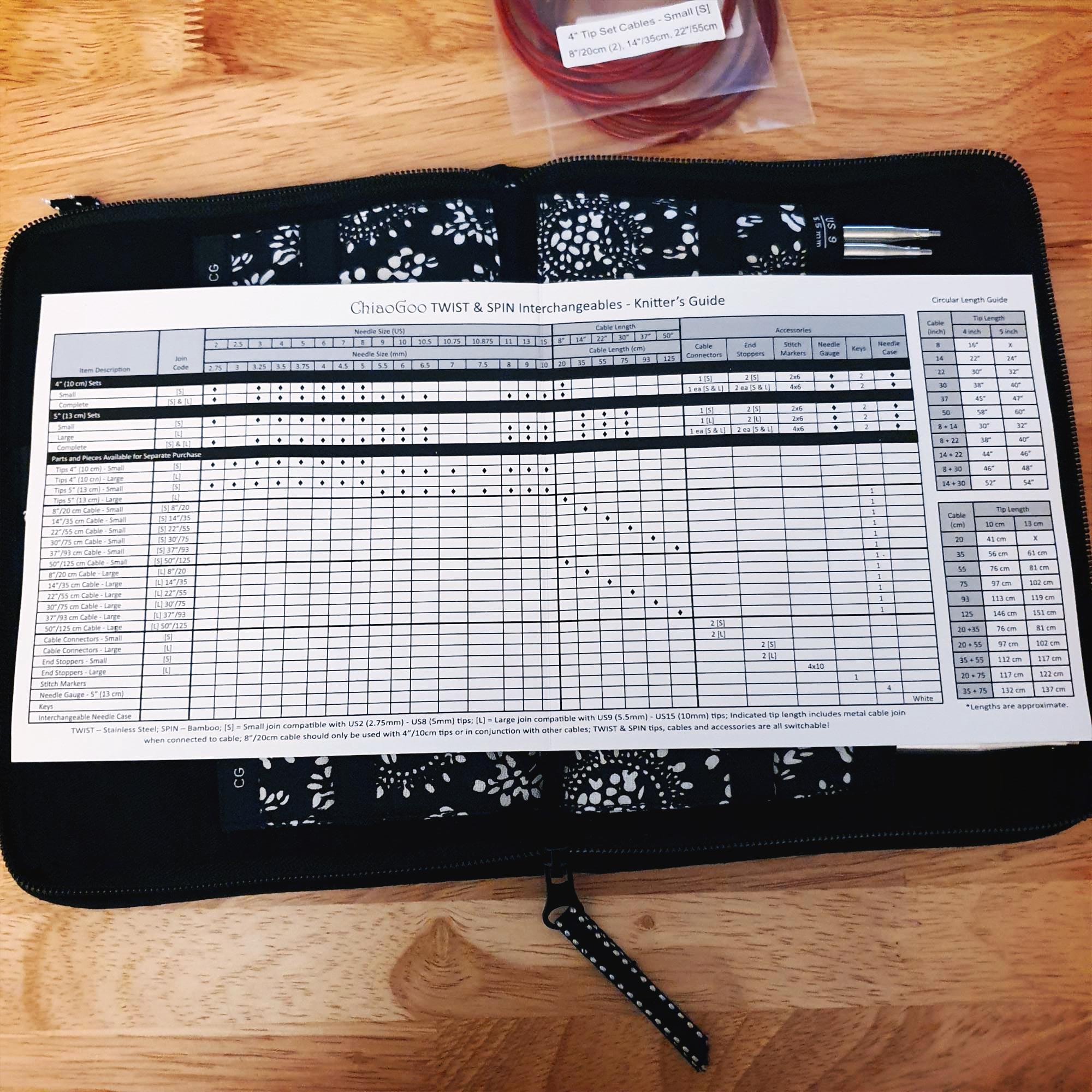 보통 얘기할 때 치아오구 조립식 대바늘 컴플릿 세트라고 부르며, 바늘 길이에 따라 4인치와 5인치 짜리 세트가 있는데 나는 조금 짧은 바늘이 소매뜨기하거나 좁은 부분 뜰 때 더 좋을 것 같아서 4인치 바늘 세트로 구매했다.